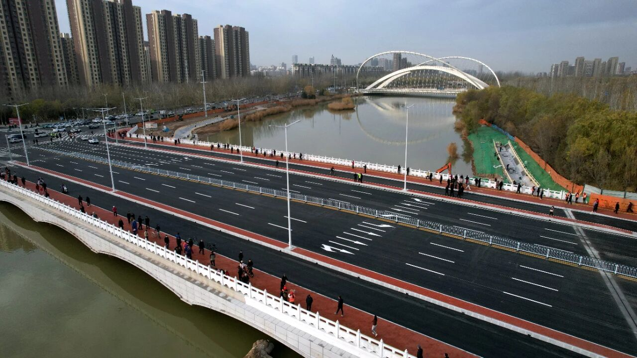 该桥梁为长269米,宽50米,双向8车道的城市次干道,南北两侧商业、学校和居民区众多,项目的建成投用,将有效缓解周边凤凰街、民族街等道路的交通压力,提高上下游路段通行效率,促进交通微循环。